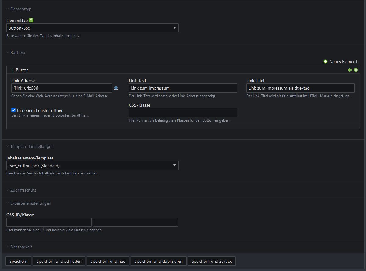 Die Buttonbox ist so aufgebaut, dass im Backend 1 oder mehrere Buttons/Links angelegt werden können.