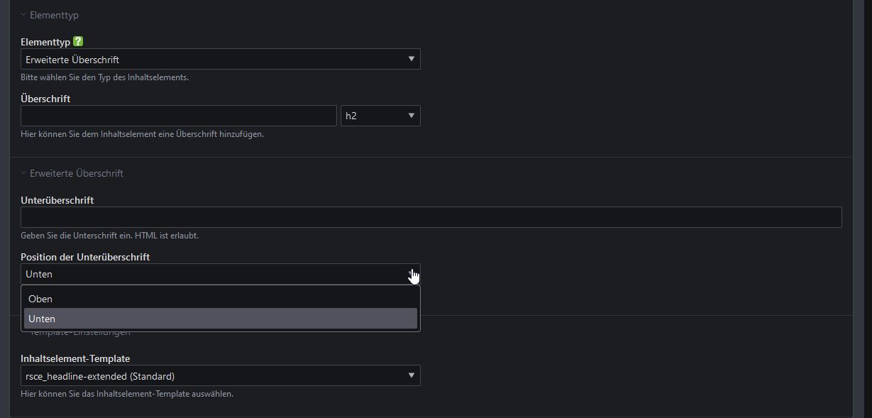 Im Backend hast du nun die Möglichkeit die Überschrift und die Unterüberschrift einzutragen.